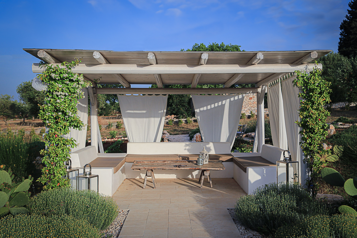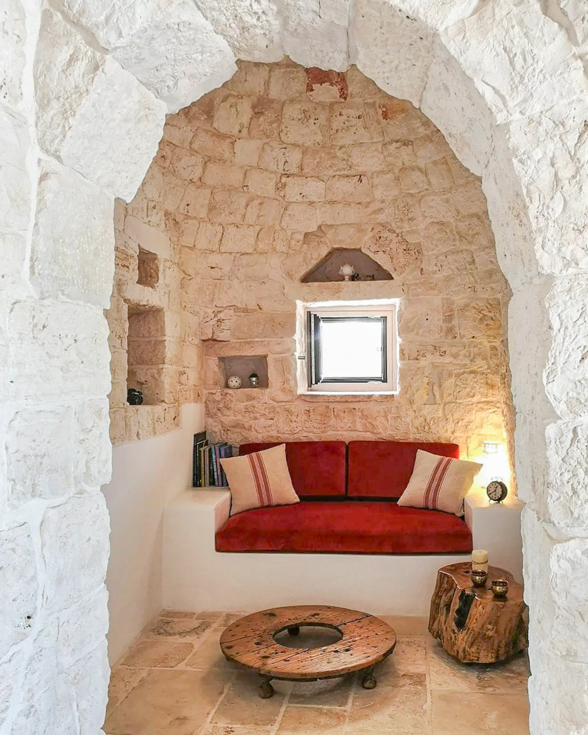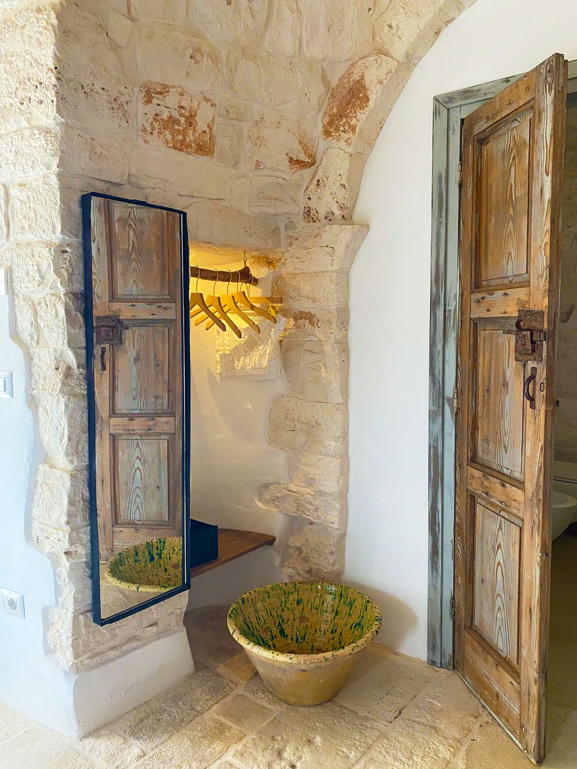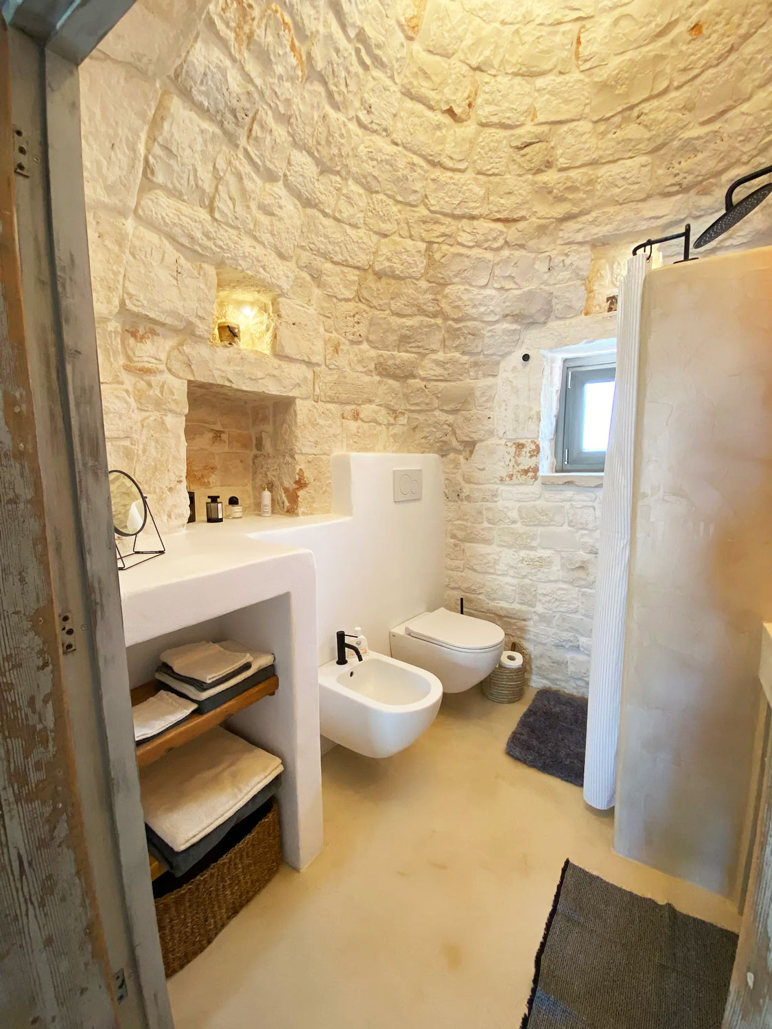 Ogni singola pietra diventa parte di un racconto contemporaneo, il recupero e l’attenzione al design diventano fondamentali per unire passato e presente. Gli interni, elegantemente restaurati, fondono manufatti antichi con elementi contemporanei. L’atmosfera accogliente si sposa con il comfort moderno, trasformando il trullo in un’oasi di eleganza senza tempo.