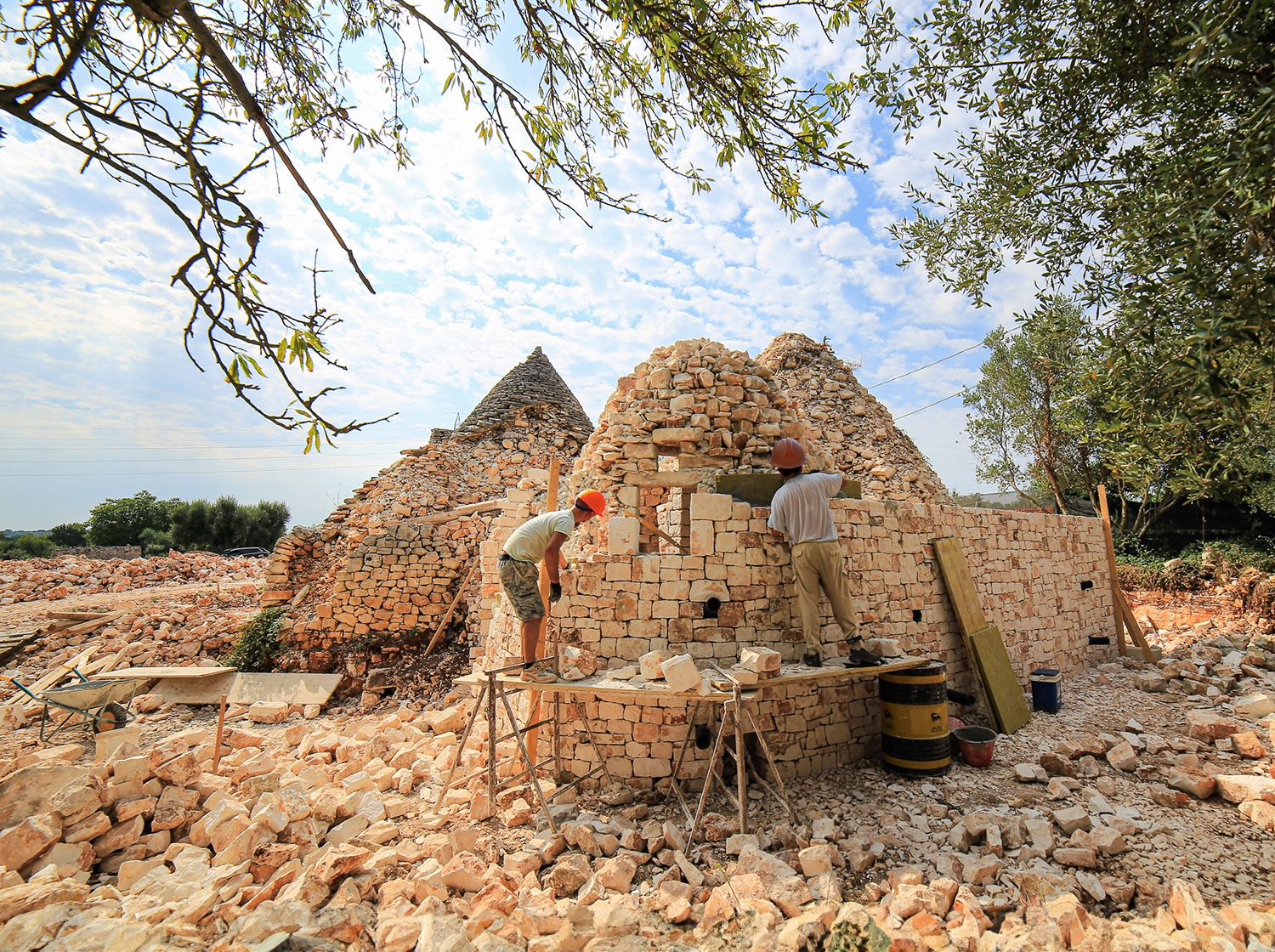 I nostri trulli, risalenti alla fine del 700, raccontano secoli di antiche tradizioni contadine che rivivono in ogni singola pietra. Un tempo depositi e luoghi di produzione vinicola, svelano i loro segreti nelle cantine originali, visibili attraverso lucernari che fanno da finestre temporali. Oggi con l’aiuto di maestri “trullari” li abbiamo riportati in vita, pietra su pietra, senza l’uso di malta, come tradizione vuole, per renderli inconfondibili con le loro cupole coniche, simbolo supremo della Puglia.